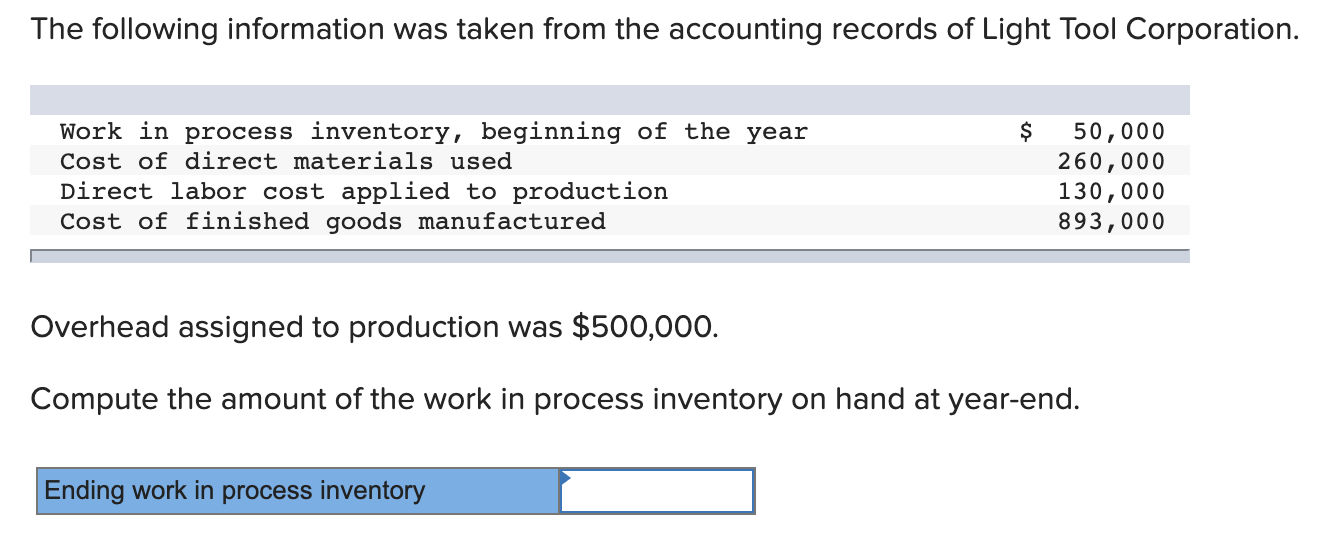 Subsequently work-in-process inventory costs are transferred to the finished goods account. If it is correct proceed to part 3. Work-in-progress at the end.